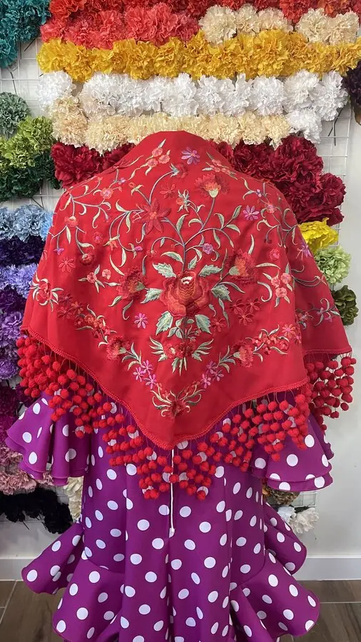 Perfecto para ferias y eventos, este mantón aporta estilo y movimiento a cada paso. ¡Luce espectacular y destaca con tu outfit flamenco!