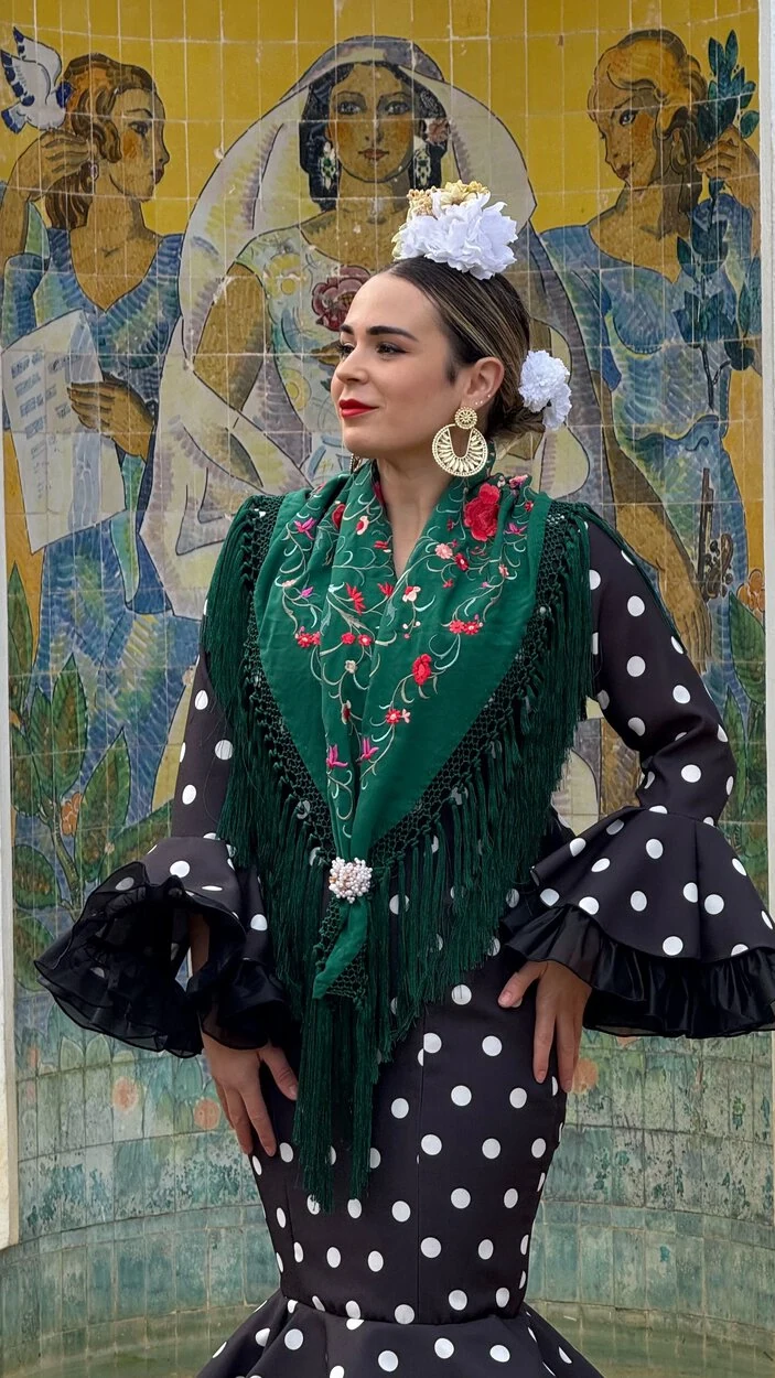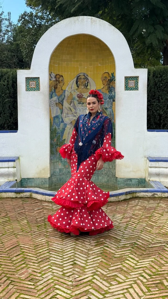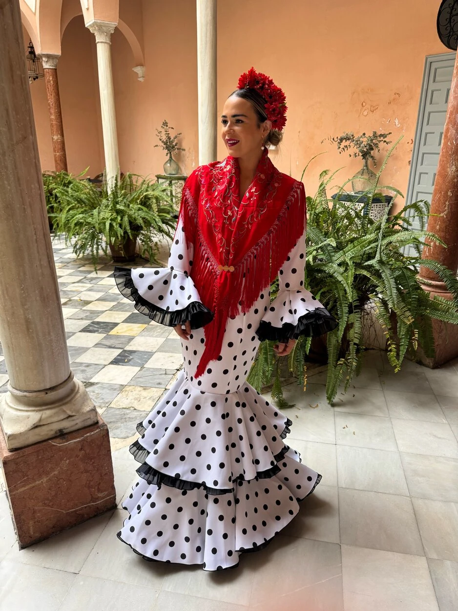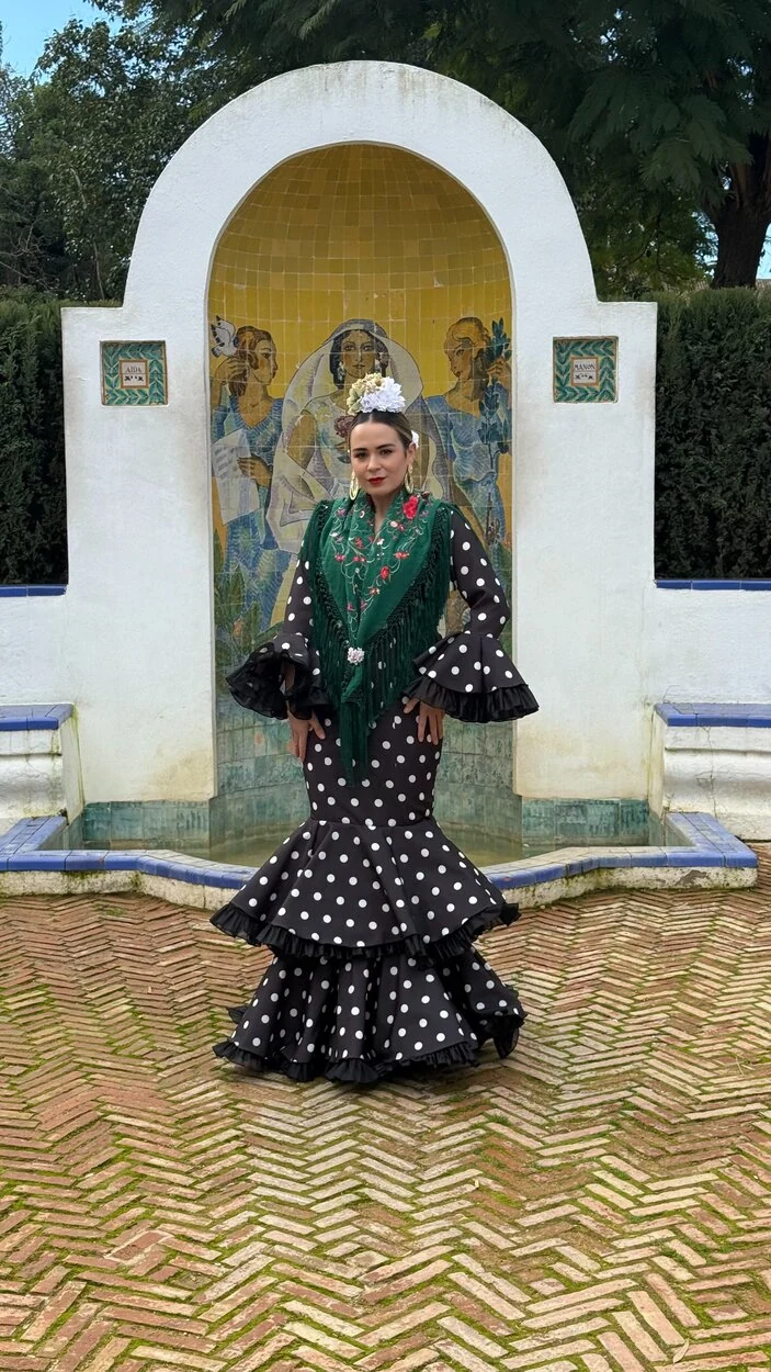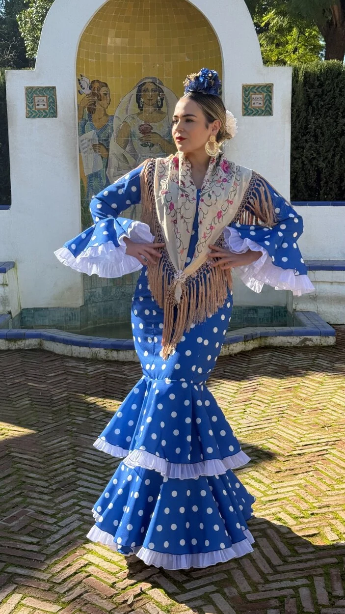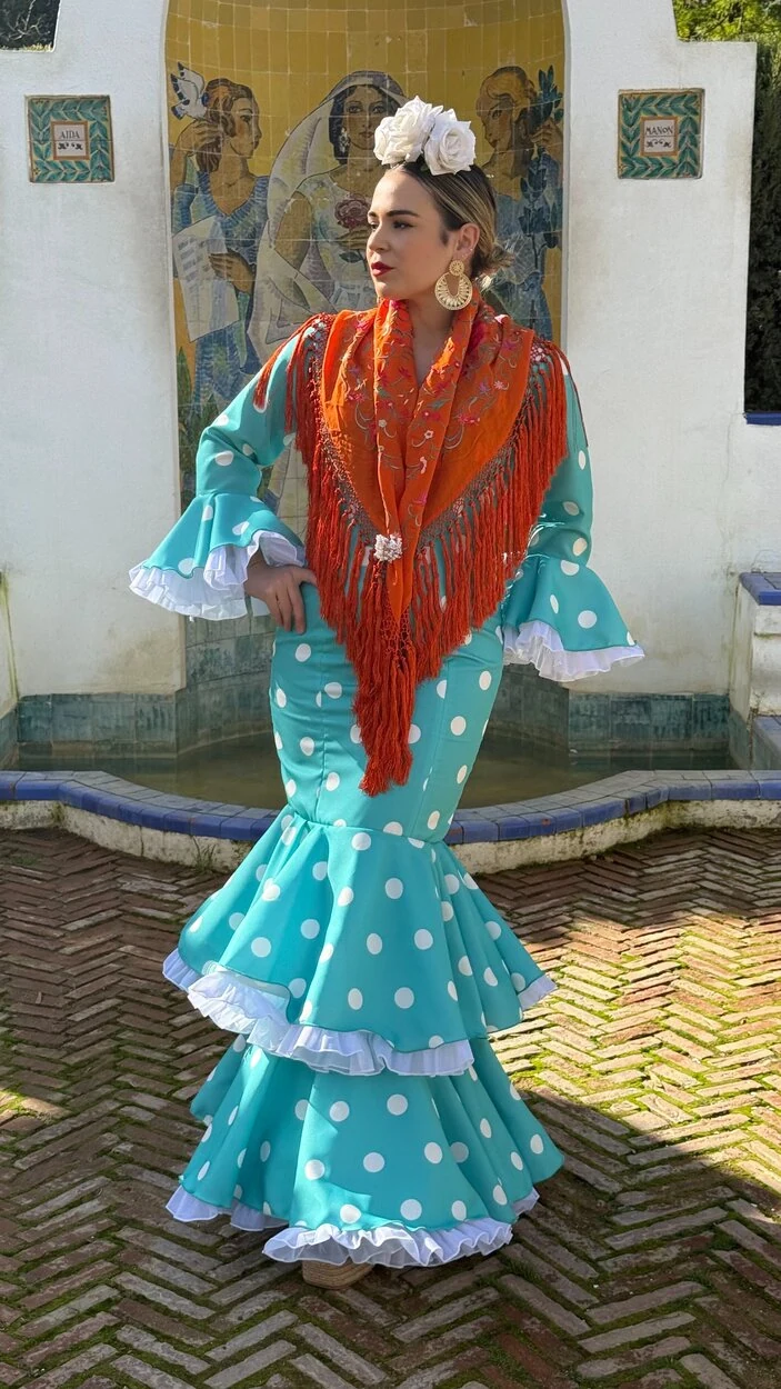 Sus volantes aportan volumen y personalidad al vestido, manteniendo la esencia del traje de flamenca tradicional andaluz, con un diseño actual y funcional.