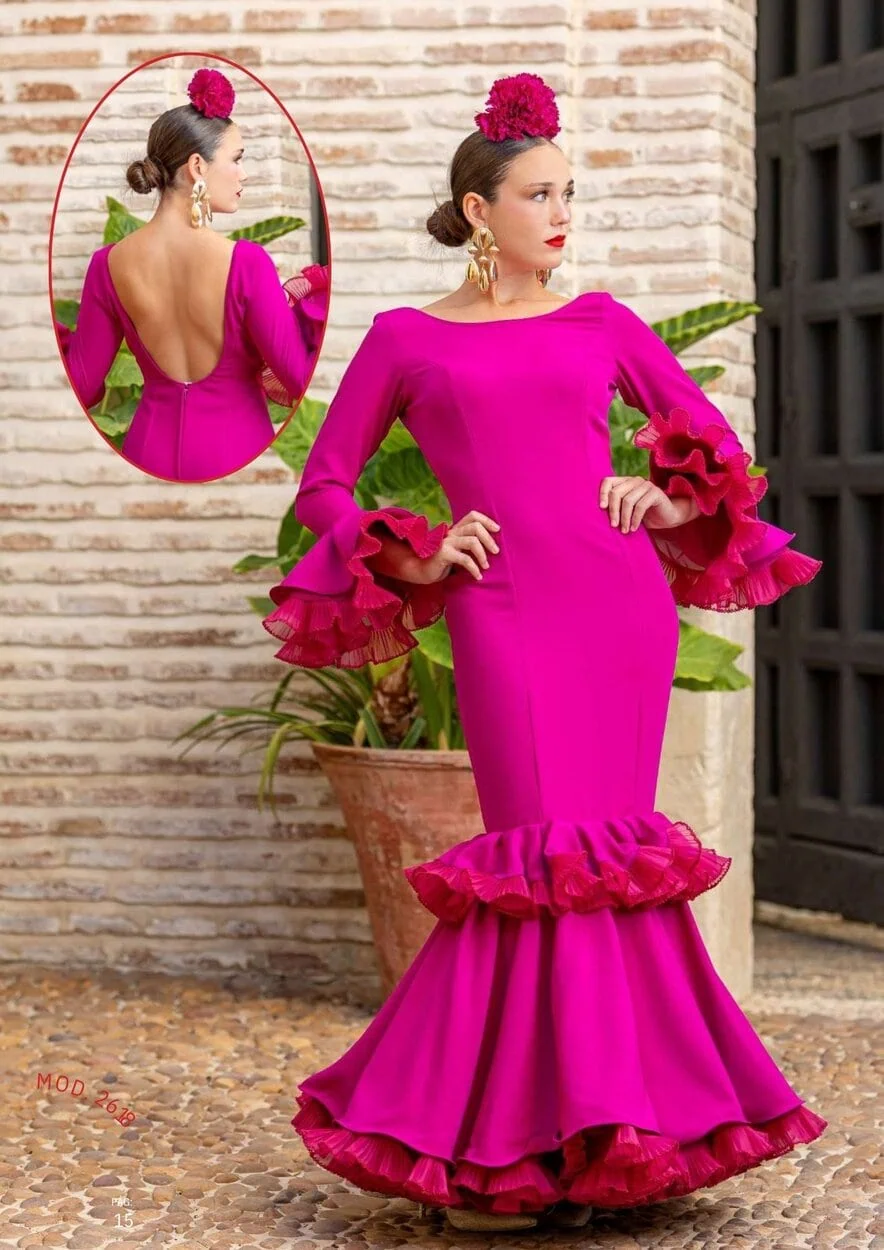 LBF Traje de flamenca Hibisco liso. Talla 34 A 42 varios colores