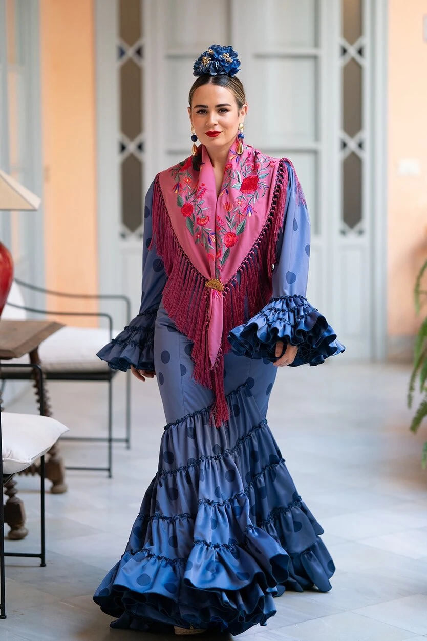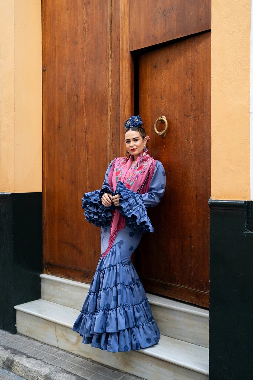 Sus volantes aportan volumen y personalidad al vestido, manteniendo la esencia del traje de flamenca tradicional andaluz, con un diseño actual y funcional.
