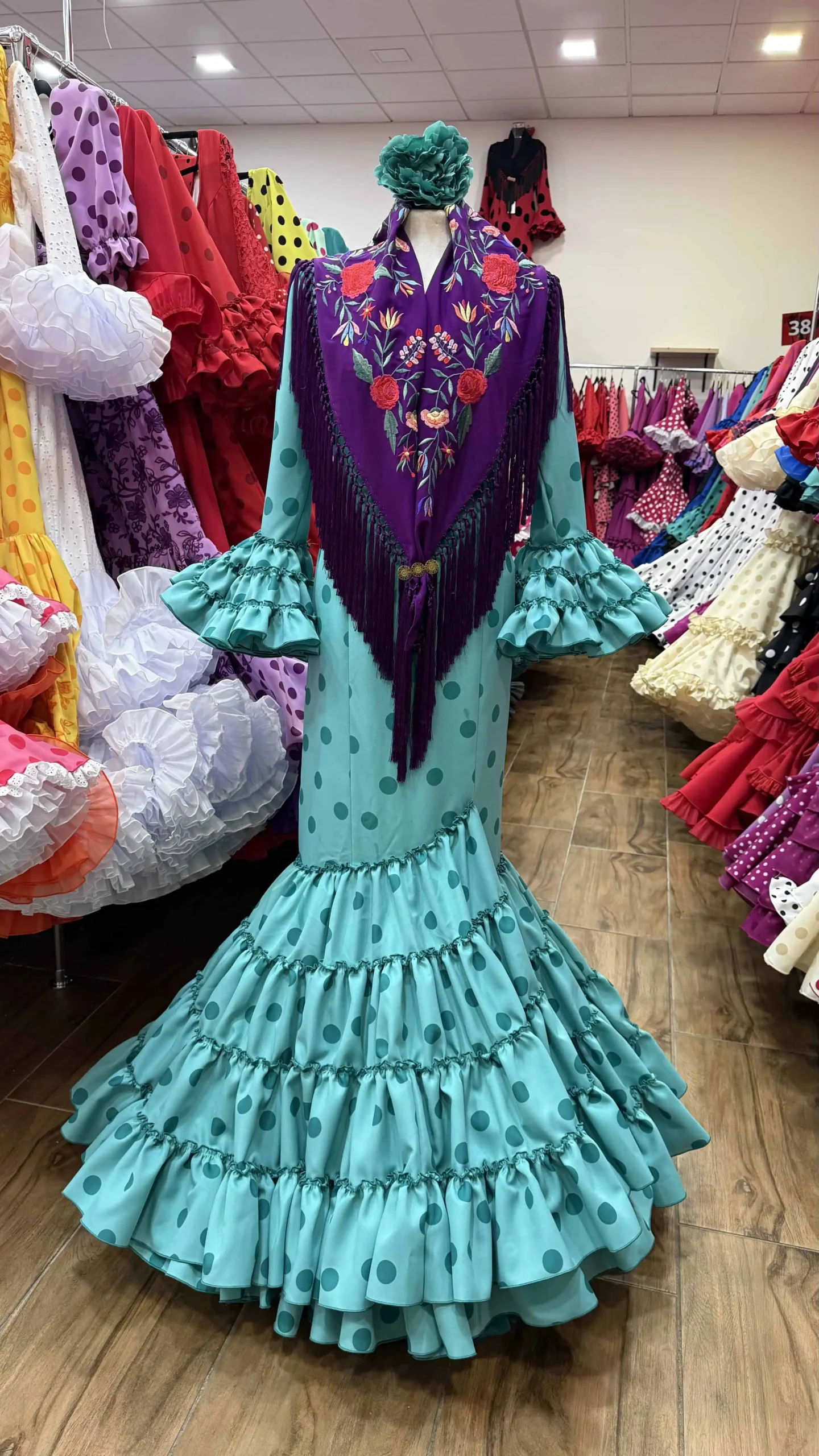 LBF Traje de flamenca Irene pomposo. Talla 36 a 60 Varios colores