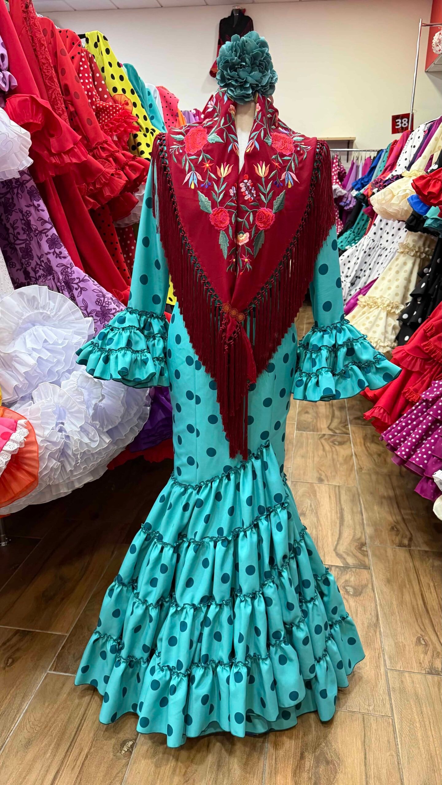 LBF Traje de flamenca Irene verde lunar verde quirofano. Talla 34 a 46