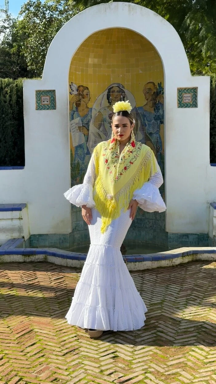 Sus volantes aportan volumen y personalidad al vestido, manteniendo la esencia del traje de flamenca tradicional andaluz, con un diseño actual y funcional.