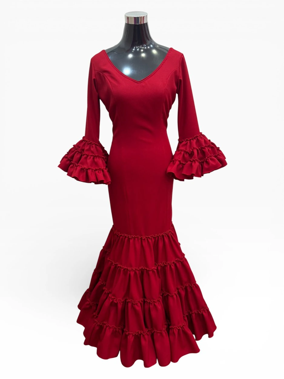 Traje de flamenca fabricado en Sevilla en nuestra fábrica propia, confeccionado con tejidos nacionales de alta calidad. Diseño cómodo y favorecedor, ideal para feria, romería y eventos flamencos. Producción durante todo el año para garantizar disponibilidad y el mejor precio.