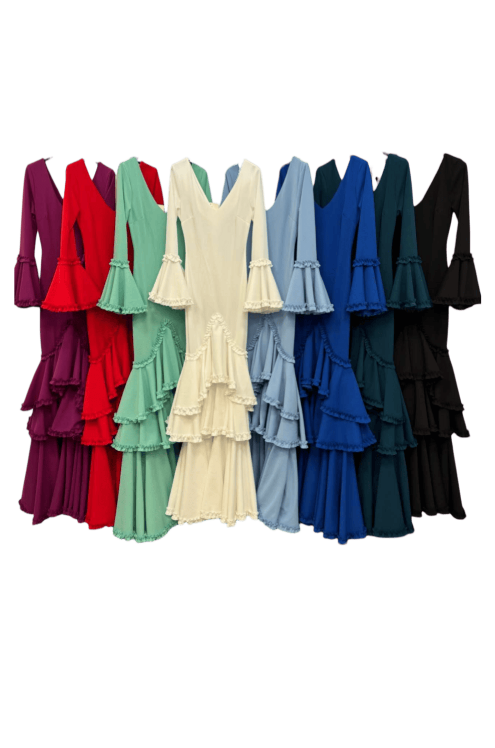 LBF Traje de flamenca lycra 3 volantes con subida. Talla XS A XXL