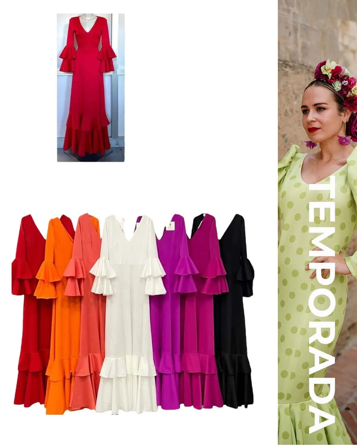 LBF Traje de flamenca lycra bata vuelo. Tallas XS A XXL