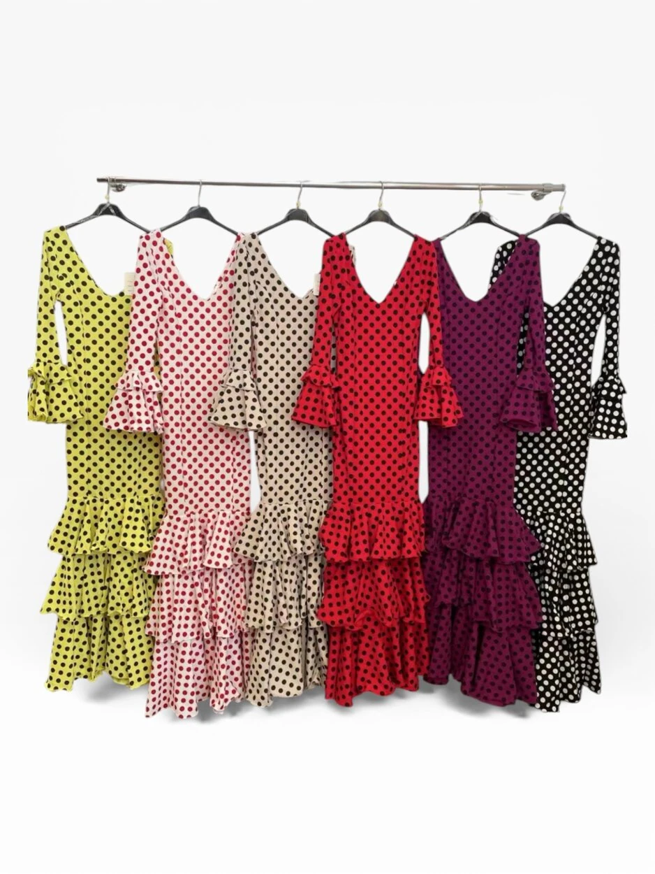 LBF Traje de flamenca lycra tres volantes lunar. Talla XS a XXL