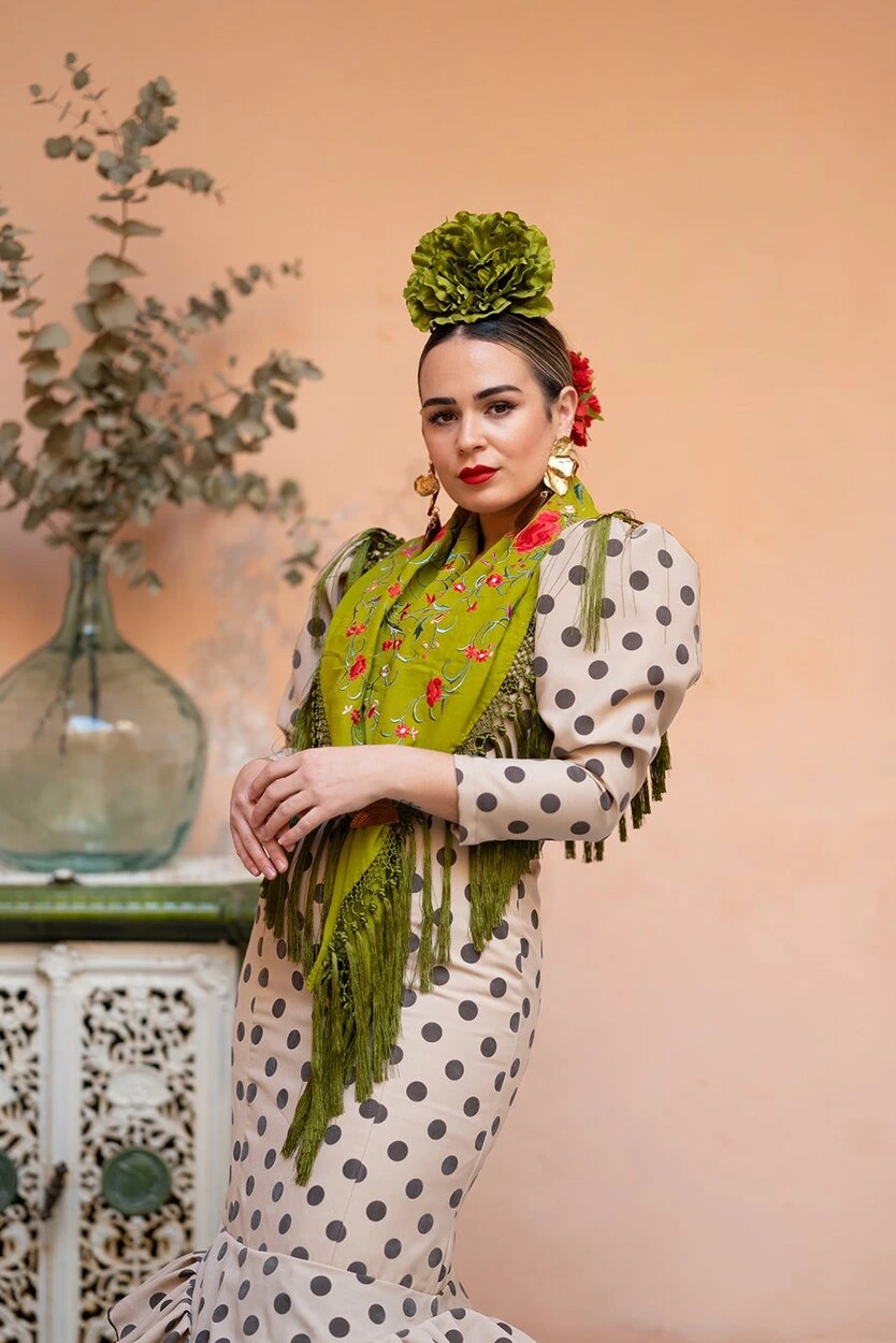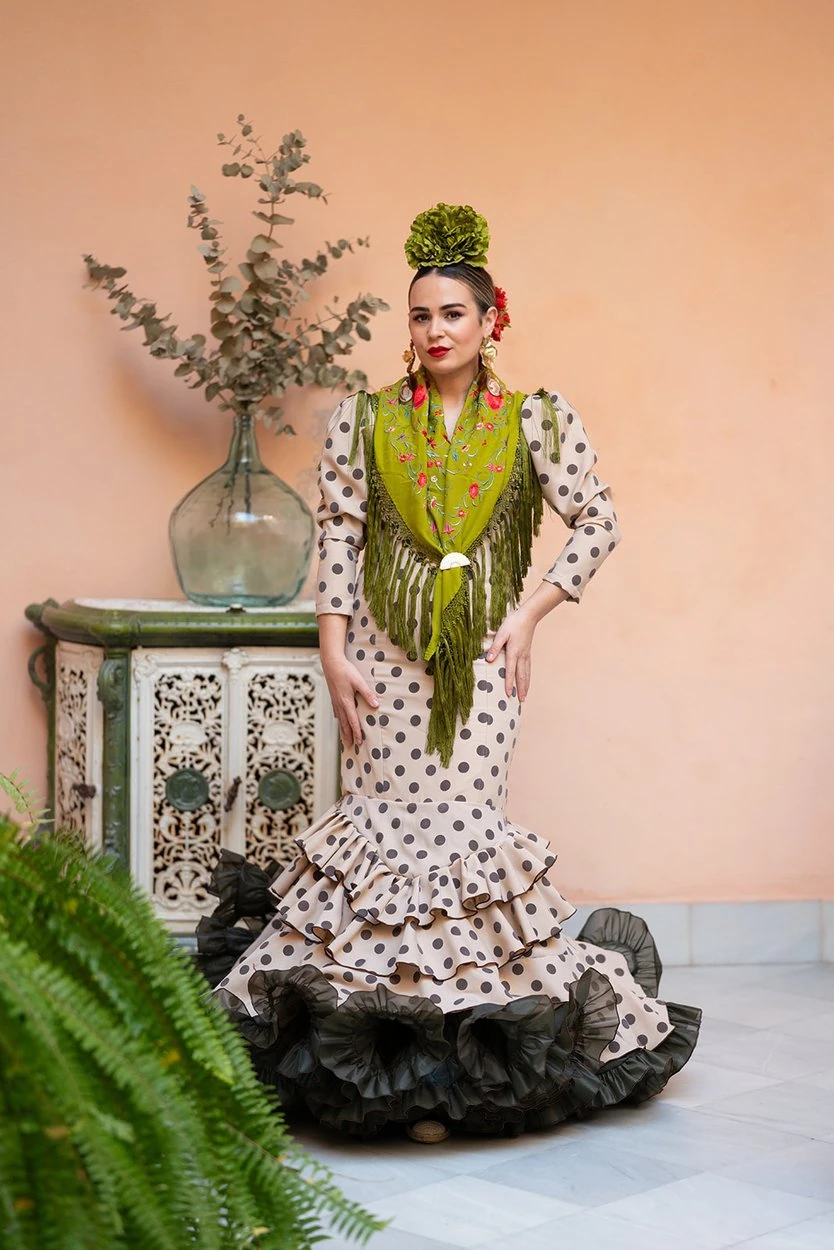 Sus volantes aportan volumen y personalidad al vestido, manteniendo la esencia del traje de flamenca tradicional andaluz, con un diseño actual y funcional.
