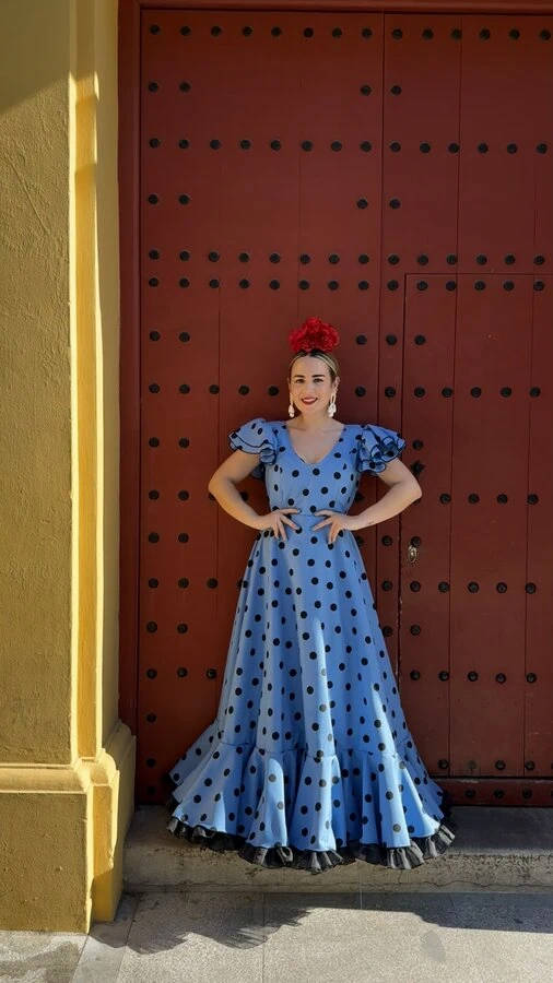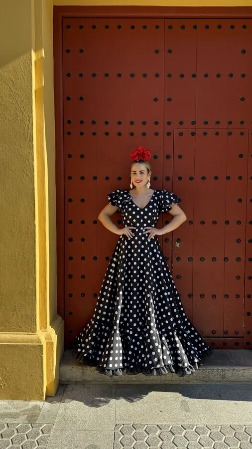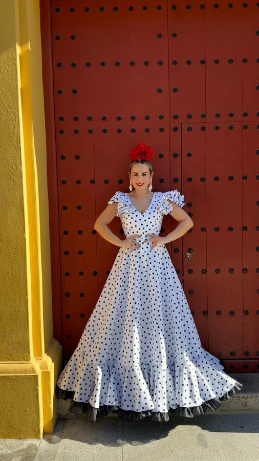Sus volantes aportan volumen y personalidad al vestido, manteniendo la esencia del traje de flamenca tradicional andaluz, con un diseño actual y funcional.