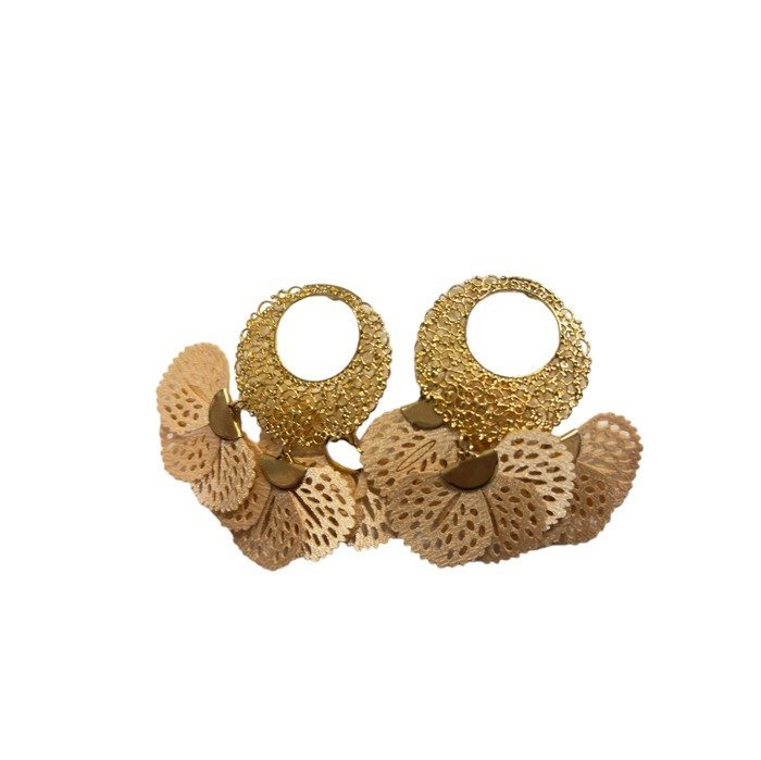 Pendientes aro dorado con pétalos tostados