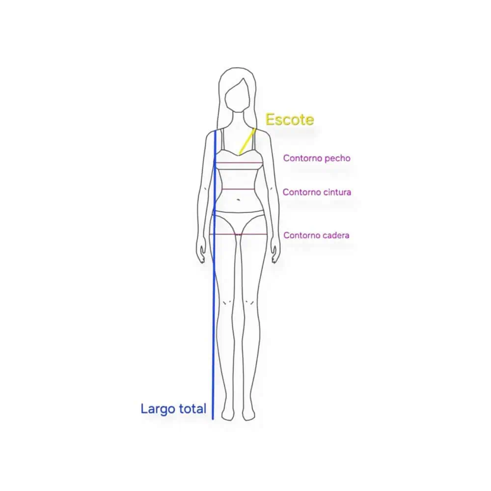 ⚠️ IMPORTANTE: Los tallajes de nuestros trajes son ajustados y no son comparables con el tallaje de ropa convencional · Es imprescindible medirse correctamente y comprobar las medidas de nuestras tallas · Cada cuerpo es diferente y puede variar bastante entre pecho y cadera · En caso de duda, recomendamos elegir una talla más grande y ajustarla · Para cualquier duda, escríbenos por WhatsApp
